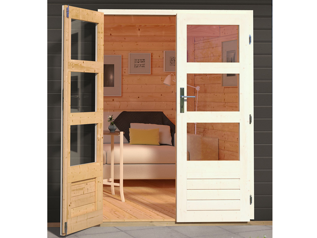 - Das Gartenhaus wird ohne Fußboden geliefert. Einen passenden Fußboden (achte auf die Serienbezeichnung) findest Du in unserem Zubehör-Sortiment.