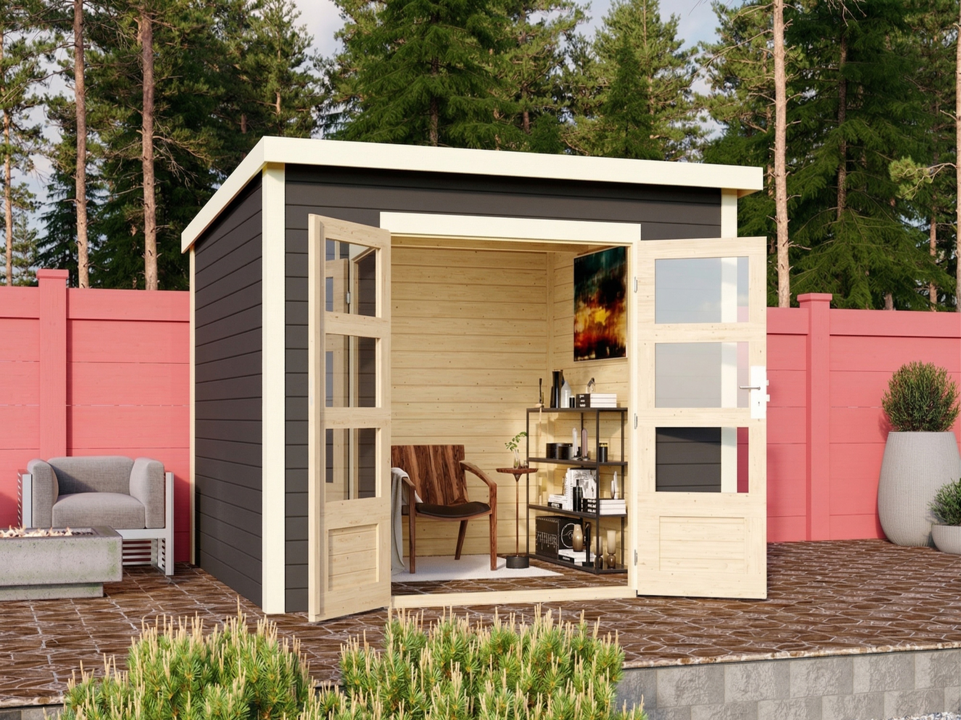 Mit diesem modernen Gartenhaus liegst Du voll im Trend. Dieses Gartenhaus überzeugt mit seinem modernen Design, das für einen echten Hingucker im Garten sorgt. Praktisch und kompakt passt es in jeden modernen Garten.