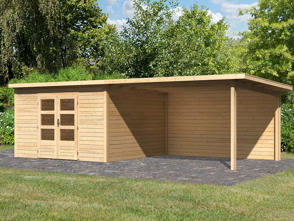 Gartenhaus Wacken 8 28 mm naturbelassen inkl. 4 m Anbau + Rückwand