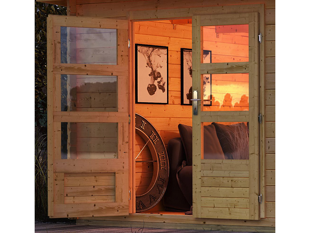 Mit einer Wandstärke von 28 mm ist das robuste Gartenhaus der perfekte Aufenthaltsort im Sommer. Aufgrund wärmedämmender Eigenschaften des hochwertigen Holzes ist es im Inneren des Gartenhauses während der prallen Sommerhitze 3-5 Grad kühler, in den kälteren Abendstunden 3-5 Grad wärmer als draußen. So hast Du im heißen Sommer immer ein schattiges Plätzchen. Dank der soliden Wandstärke verwittert das Holz nicht so schnell und bleibt langlebig und stabil.