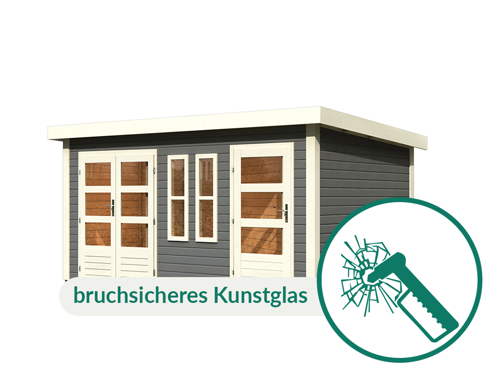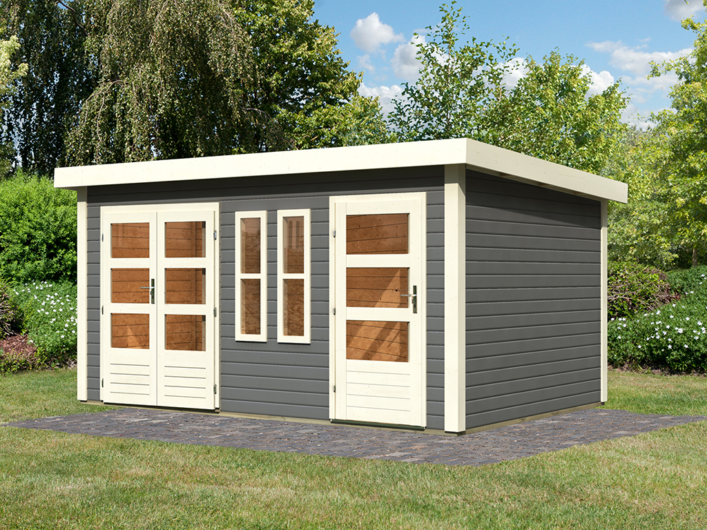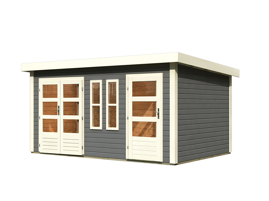 KARIBU Gartenhaus Zweiraumhaus Appelhorn 28 mm terragrau