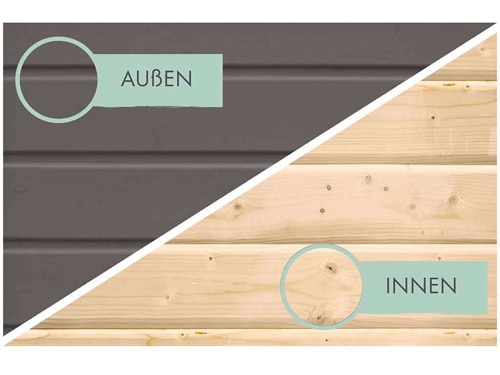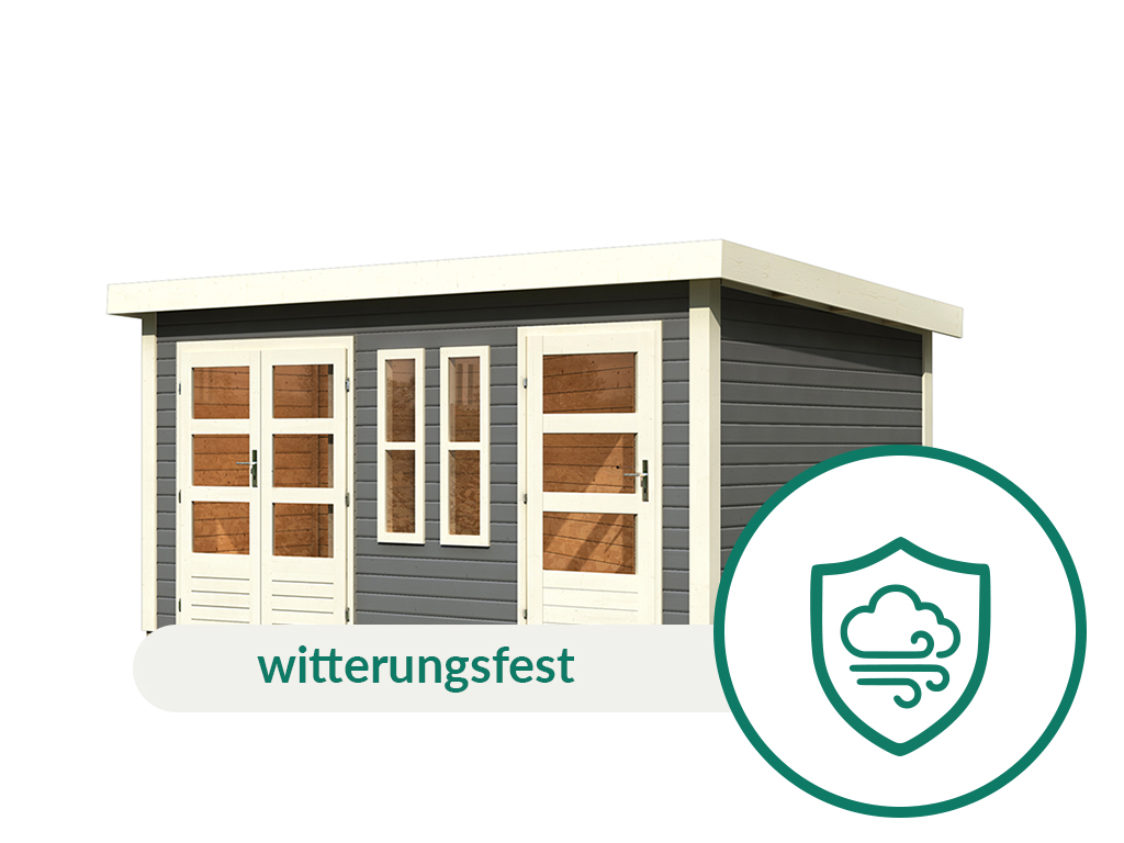 Mit einer Wandstärke von 28 mm ist das robuste Gartenhaus der perfekte Aufenthaltsort im Sommer. Aufgrund wärmedämmender Eigenschaften des hochwertigen Holzes ist es im Inneren des Gartenhauses während der prallen Sommerhitze 3–5 Grad kühler und in den kälteren Abendstunden 3–5 Grad wärmer als draußen. So hast du im heißen Sommer immer ein schattiges Plätzchen. Dank der soliden Wandstärke verwittert das Holz nicht so schnell und bleibt langlebig sowie stabil.