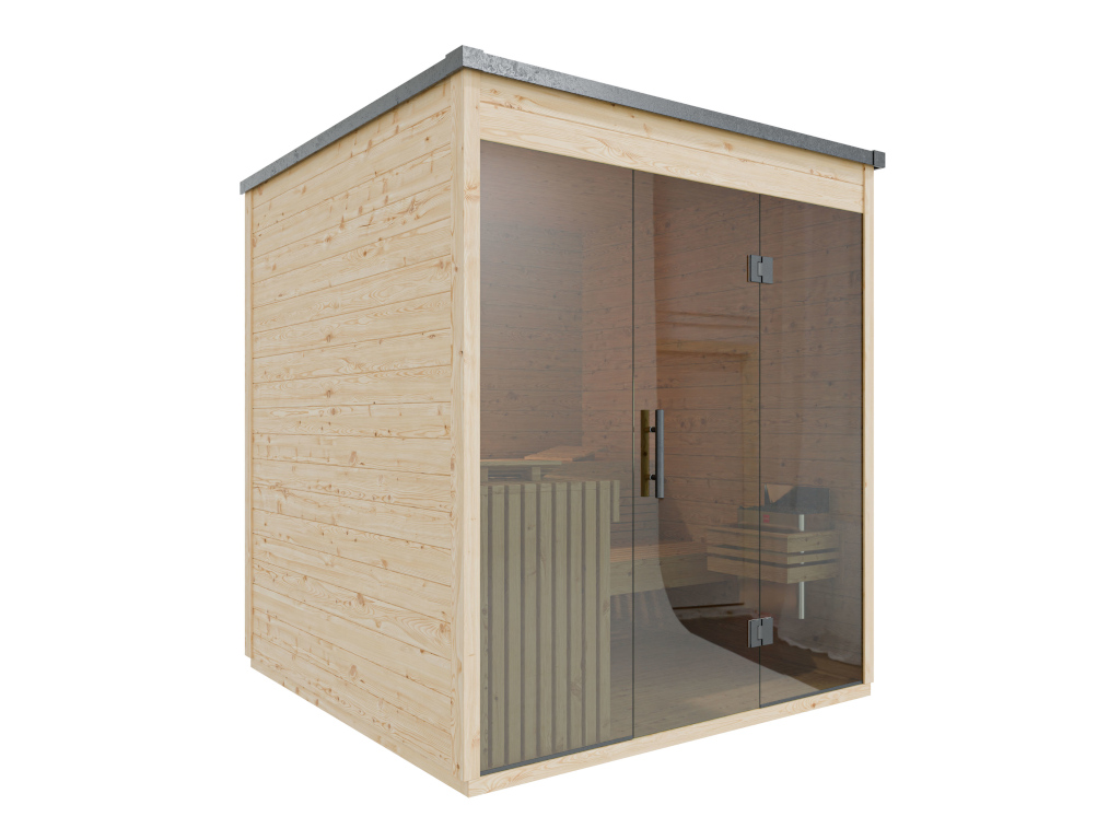 Erlebe pure Entspannung mit deiner Gartensauna: Hochwertige Materialien und attraktives Design sorgen für ein einzigartiges Saunaerlebnis direkt in deinem Garten. Hier können 4-6 Personen gleichzeitig saunieren.