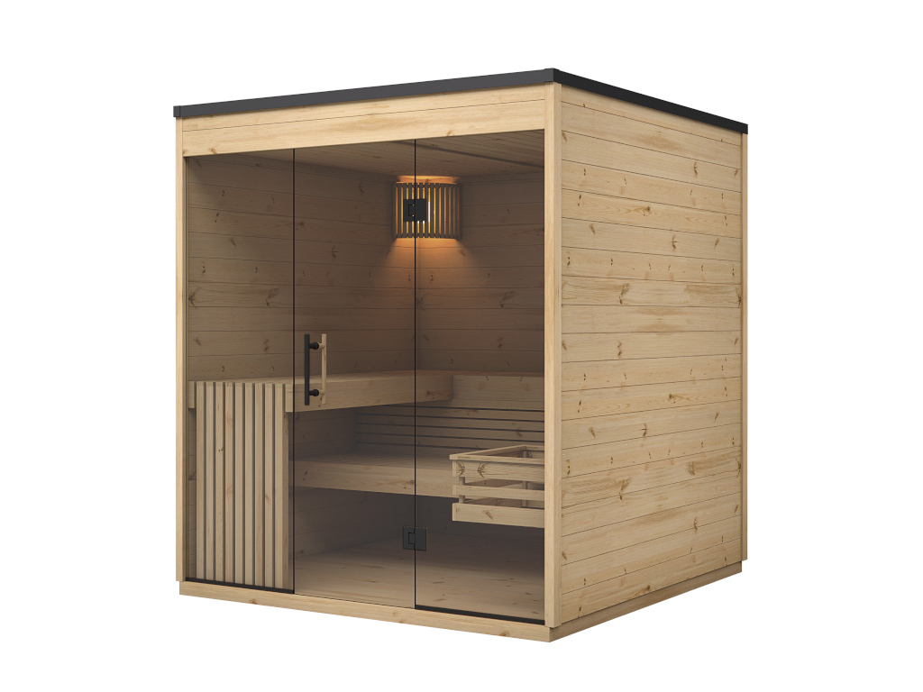 - Bodenrost aus fußwarmem Fichtenholz: für angenehmes Auftreten innerhalb und außerhalb der Sauna.