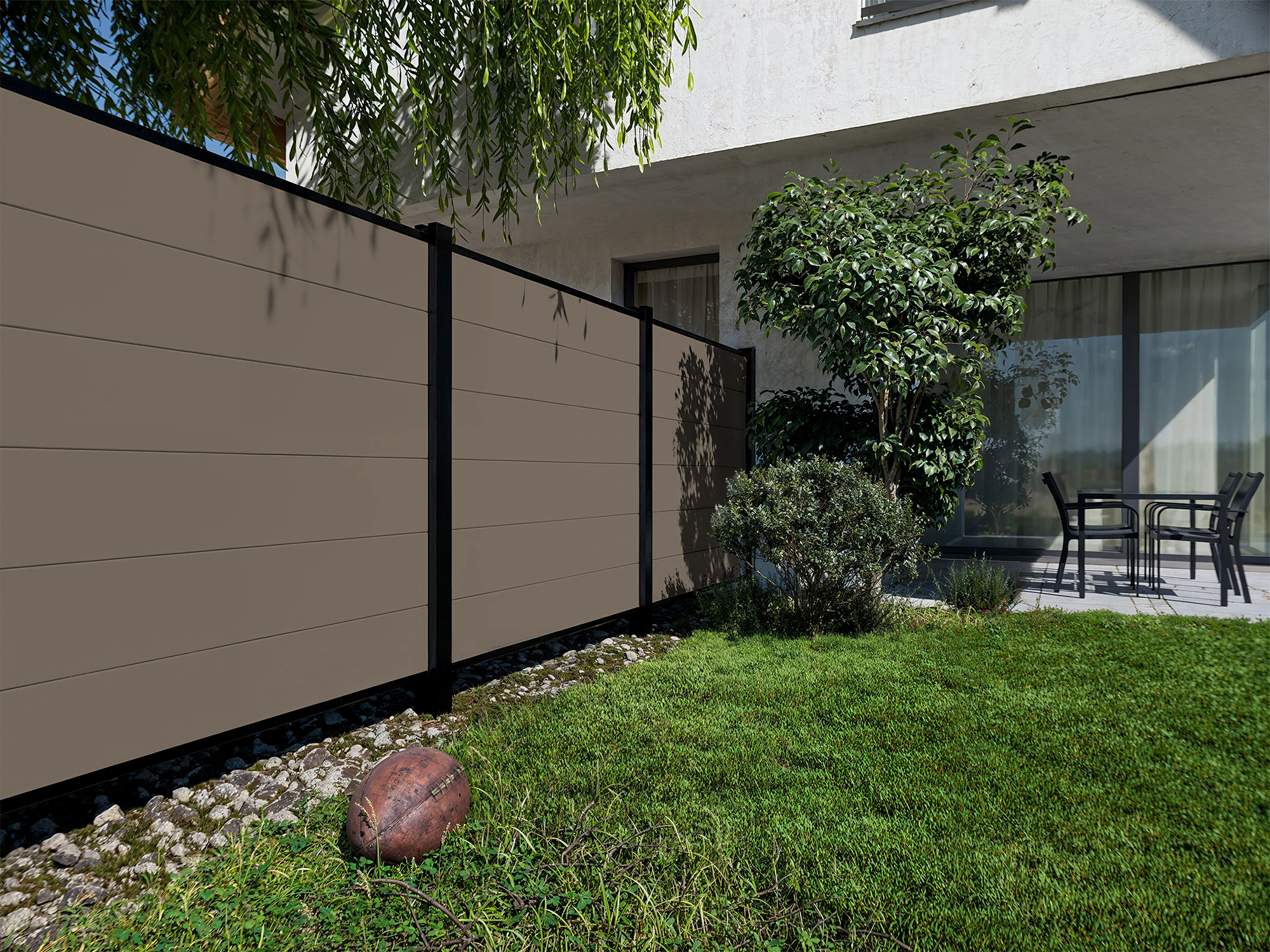 Gartenzaun Sichtschutzzaun PVC Stecksystem Walnuss Holzstruktur