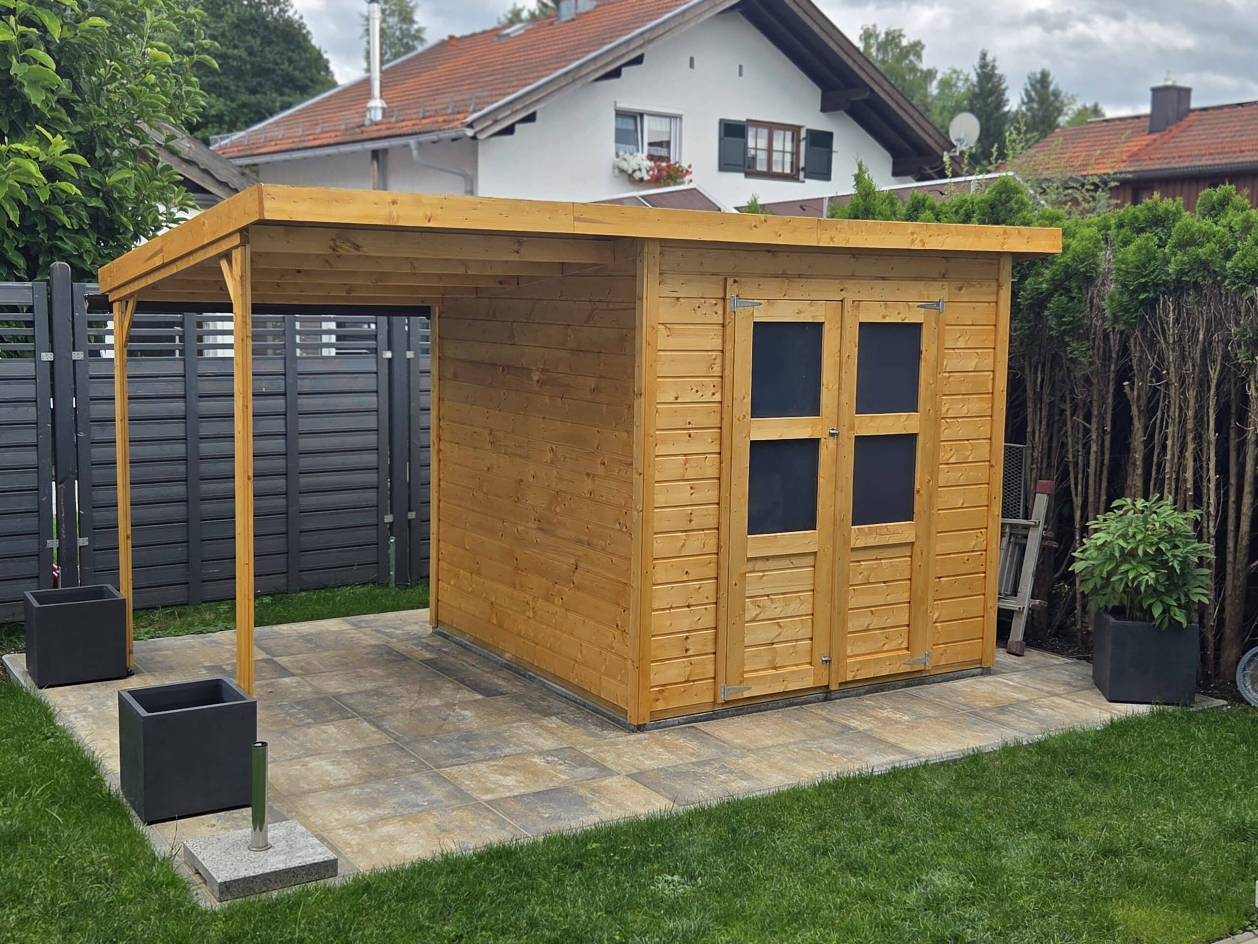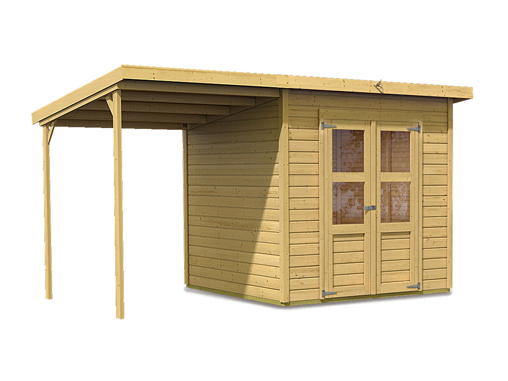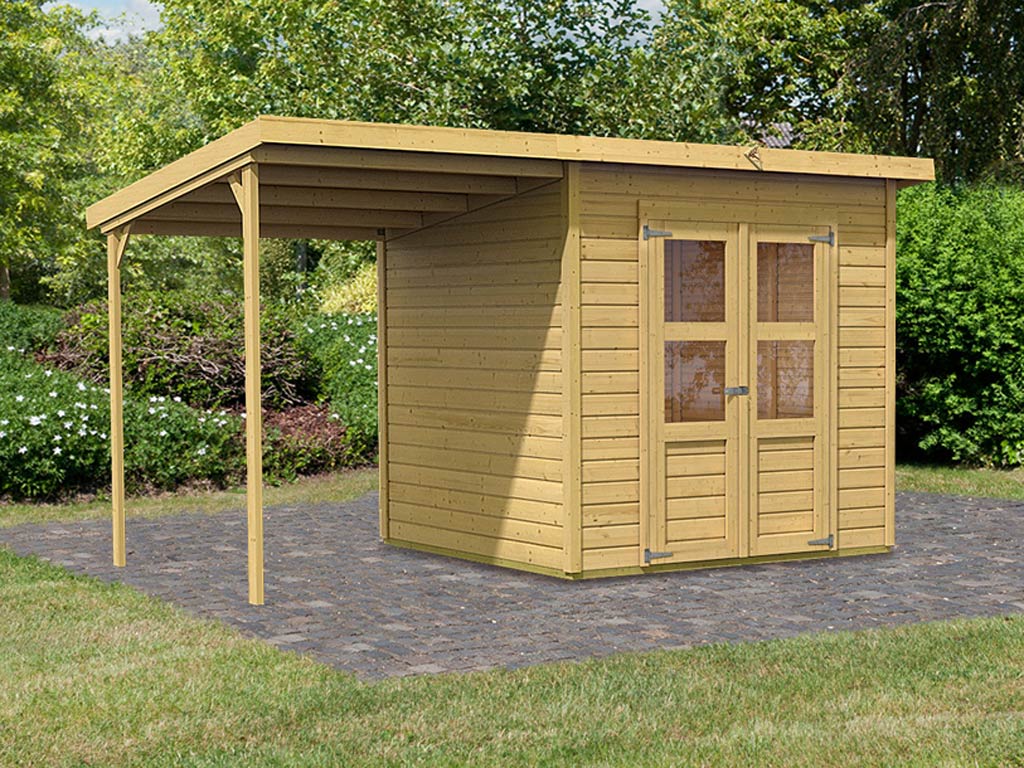 Gerätehaus Merseburg 4 14 mm naturbelassen inkl. 140 cm Anbau