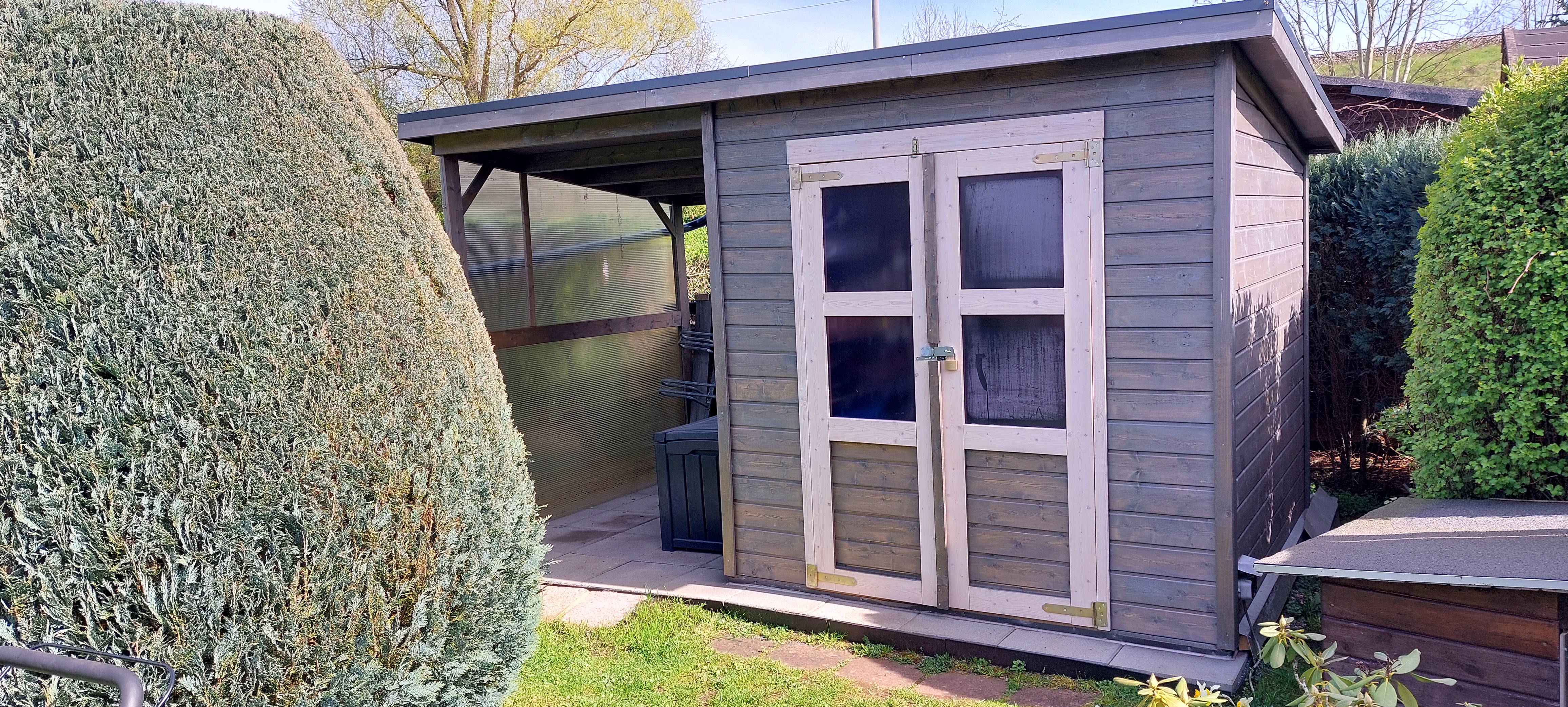 | Lieferumfang: | Gerätehaus, Anbaudach, Montagezubehör, detaillierte Montageanleitung |
