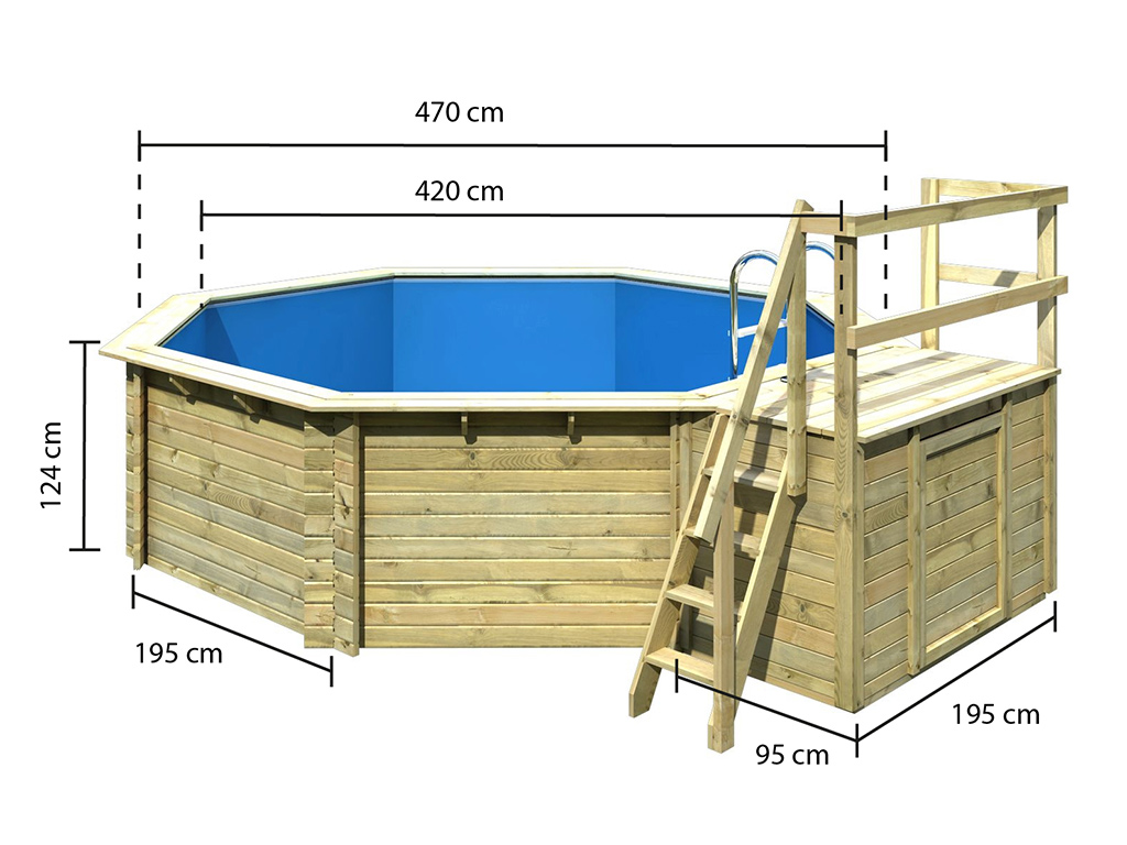 B x T x H: 470 x 470 x 124 cm, Blockbohlen Ecke, inkl. Poolfoolie, Schutzvlies und Terrasse