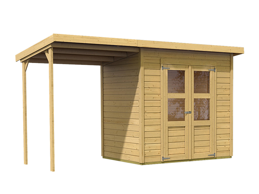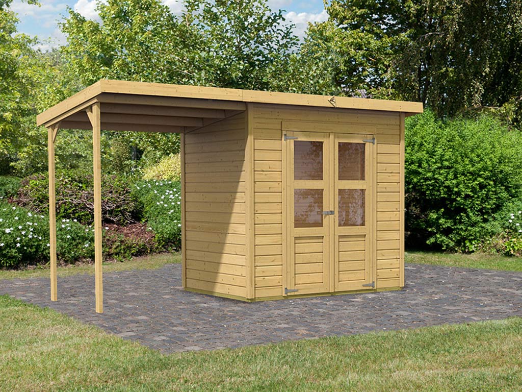 Gerätehaus Merseburg 3 14 mm naturbelassen inkl. 140 cm Anbau