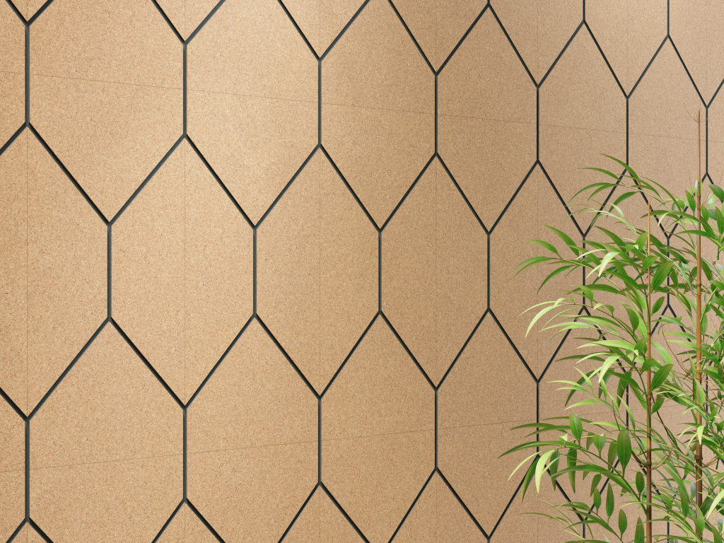Mit den GROOVY-Wandfliesen aus Kork verleihst du deinen Räumen eine elegante Vintage-Note. Ihr Design, charakterisiert durch CNC-gefräste, geradlinige und schlichte Muster, besteht gänzlich aus postindustriell recyceltem Kork und bildet ein sechseckiges Motiv an der Wand. Die von GROOVY kreierten Retro-Vibes werden durch die natürliche Optik des Korks wunderbar ausgeglichen und es entsteht ein Look, der absolut modern aussieht – und sich auch so anfühlt.