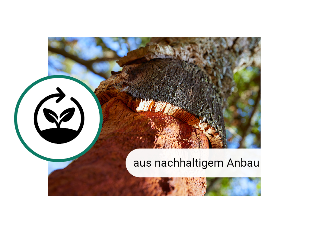 - Hergestellt aus 90 % erneuerbaren und recycelten Nebenprodukten von Kork