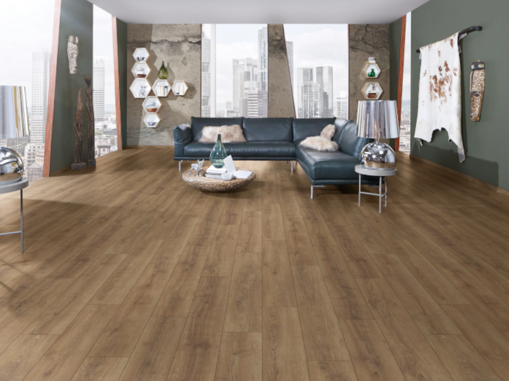Durch seine wasserresistente Trägerplatte kann dieser Bodenbelag auch in Feuchträumen wie Küche oder Bad eingesetzt werden. Über einer Warmwasserfußbodenheizung kann dieser Boden problemlos verlegt werden.