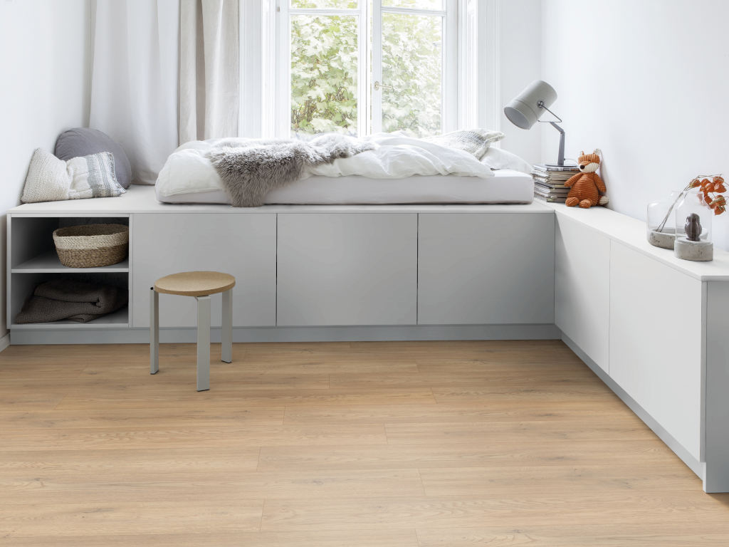 Mithilfe der Klickverbindung kann der Boden problemlos schwimmend verlegt werden. Der Bodenbelag entspricht der Nutzungsklasse 23 und ist damit für stark frequentierte Flächen im privaten Bereich geeignet, z. B. für Treppenflure oder Eingangsbereiche. In Wartezimmern, Büros oder Boutiquen mit kontinuierlicher Nutzung kann er mit der Nutzungsklasse (NK) 32 im gewerblichen Bereich punkten.