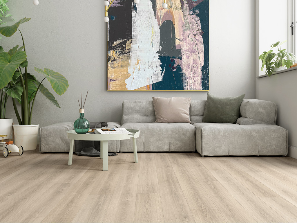 Laminat ist die ideale Kombination aus Design und Funktionalität. Die moderne Optik und die besonders pflegeleichte Oberfläche dieses Laminatbodens machen ihn zum perfekten Bodenbelag für fast jeden Bereich.