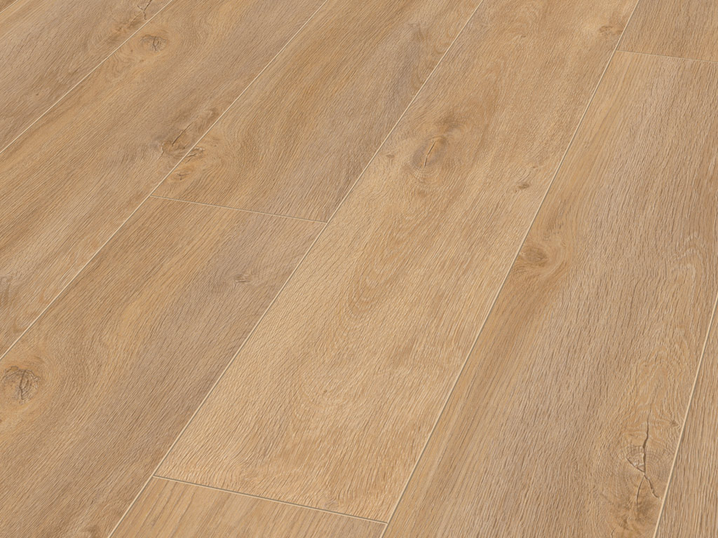 Das attraktive Eichenholzdekor fühlt sich in nahezu jedem modernen Einrichtungsstil zu Hause. Landhausdielen wirken mit ihrer 1-Stab-Optik elegant, rustikal und voller Charakter. Ein Must-have für Holz-Fans! Die 4-seitig umlaufende V-Fuge betont die Dielenoptik.