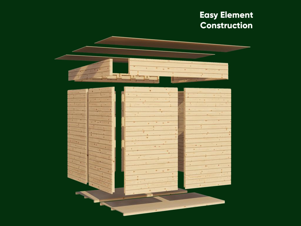 Ein 16 mm starker Fußboden aus mehreren P5 feuchteresistenten Spanplatten ist bereits im Lieferumfang enthalten. - Inkl. Montageanleitung