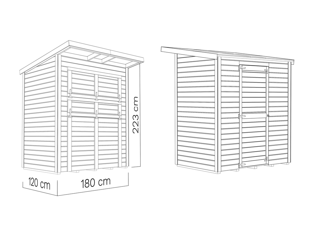 Das 12 mm starke Pultdach aus mehreren P5 feuchteresistenten Spanplatten bietet Dir bei einer Firsthöhe von ca. 222,7 cm eine komfortable Seitenhöhe von ca. 185 cm. Eine Rolle Dachpappe zur Ersteindeckung ist bereits im Lieferumfang enthalten. Wir empfehlen dir Dachschindeln für einen dekorativen und lange haltbaren Dachbelag. Beachte hierzu unser Zubehör-Sortiment. - Inkl. Fußboden
