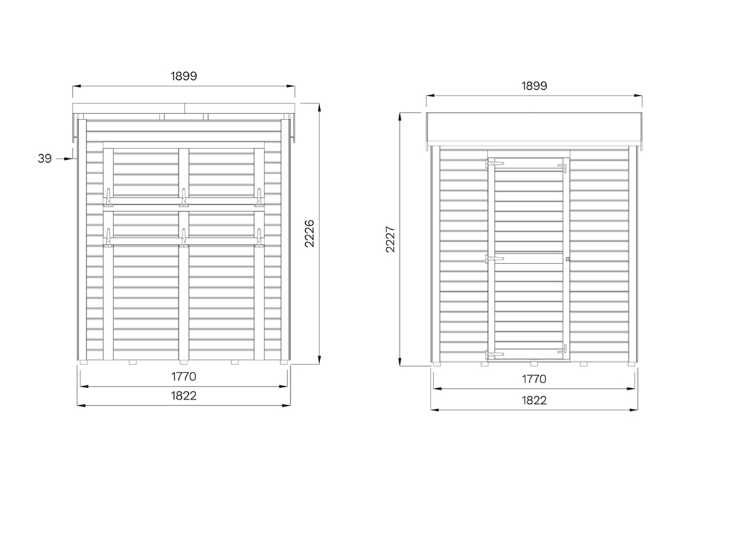 | Außenmaß inkl. Dachüberstand (B x T): | 189,9x 176,6 cm |