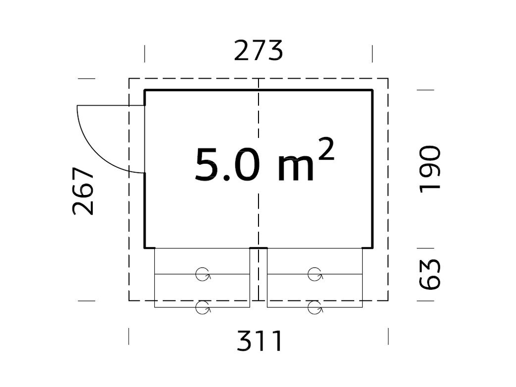 | Außenmaß inkl. Dachüberstand (B x T): | 311 x 267 cm |