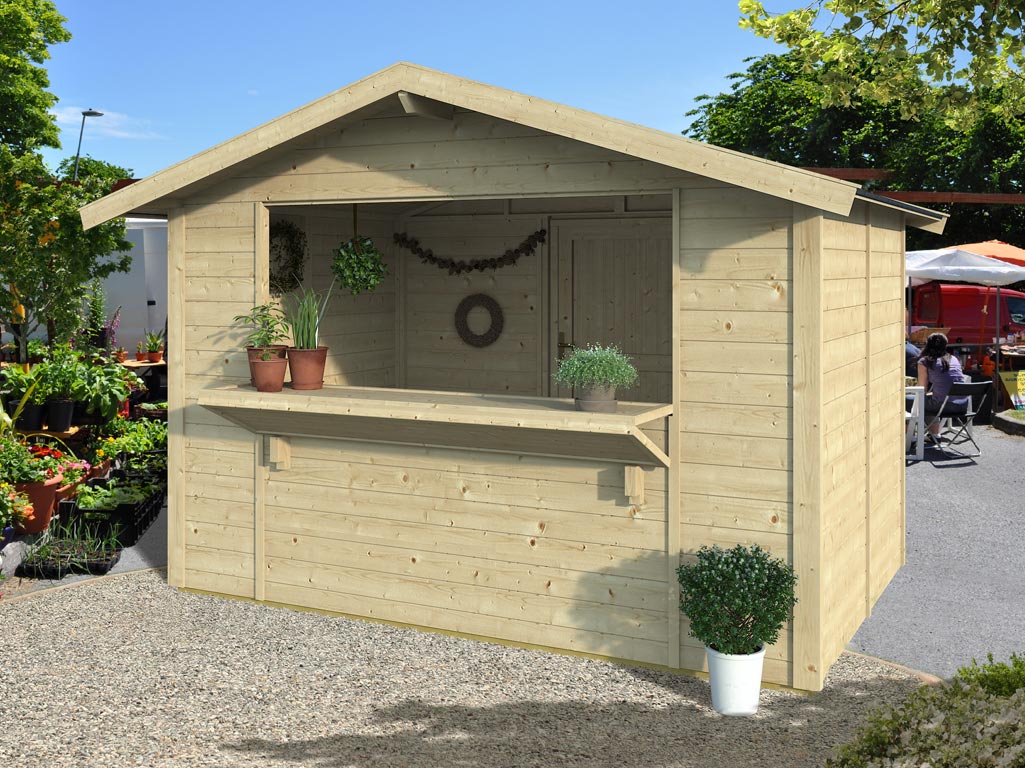Marktstand - Verkaufsstand Jasmin 6 m² 18 mm naturbelassen inkl. Boden