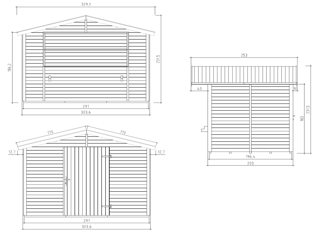 | Außenmaß inkl. Dachüberstand - Breite (cm): | 329 cm |