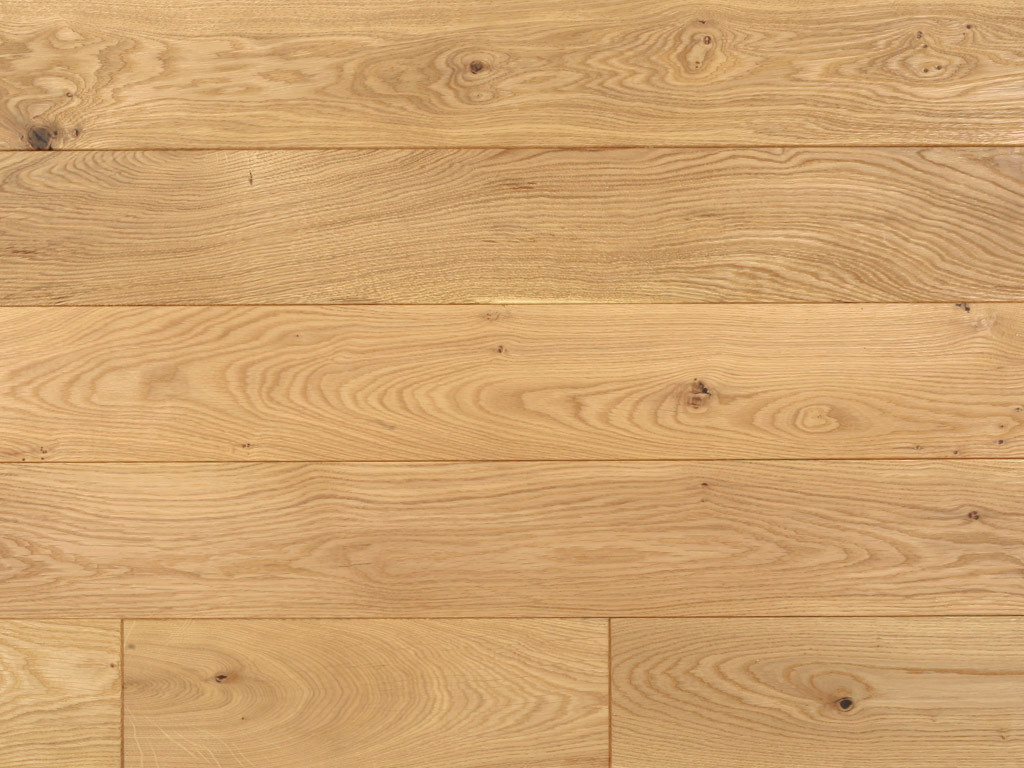 Die Massivholzdielen sind rustikal gemasert: Es finden sich viele schwarze Astlöcher und wenige Risse im Holz. Dank ihrer glatten Oberflächenstruktur glänzen diese Dielen mit der vollen natürlichen Schönheit des Holzes. Um die Pflegleichtigkeit zu optimieren, kann die unbehandelte Oberfläche lackiert, geölt oder gewachst werden.