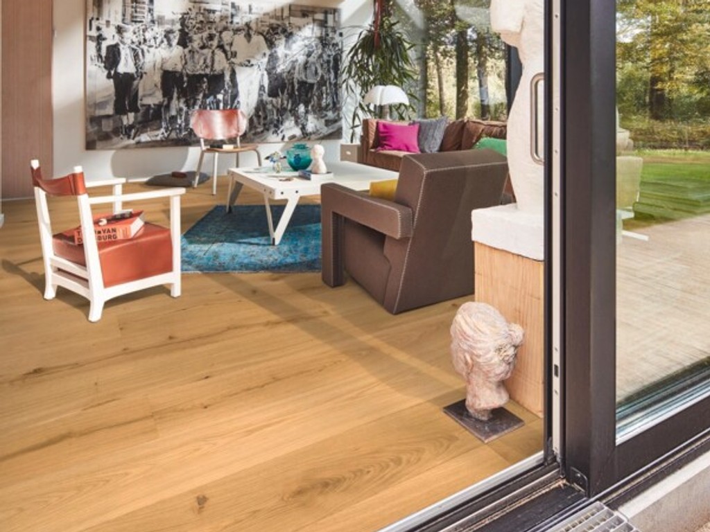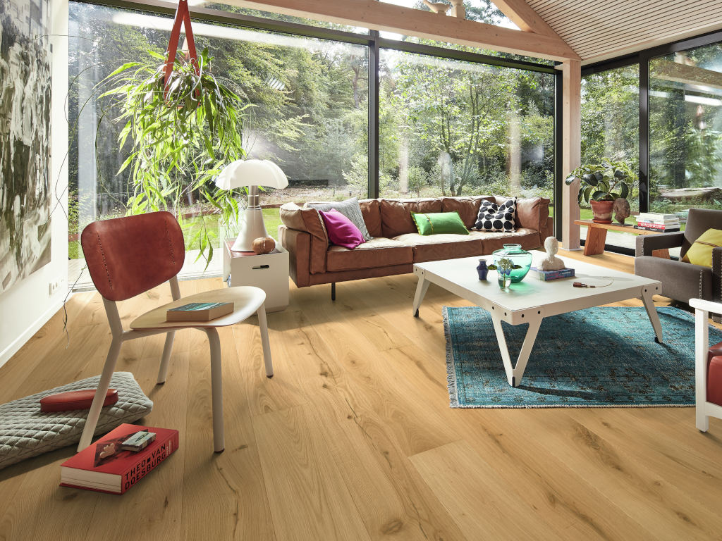 Das Holz der Eiche verleiht diesem Boden einen urwüchsigen Charakter und schenkt allen Räumen stilvolle Wärme und Behaglichkeit. Neben seiner luxuriösen Optik ist Eichenholz relativ hart, aber dennoch trittelastisch. Landhausdielen wirken mit ihrer 1-Stab-Optik elegant, rustikal und voller Charakter. Ein Must-have für Holz-Fans! Dielen mit gefaster Längskante vergrößern die optische Tiefe eines Raumes und verändern so die Raumatmosphäre hin zur Weite.