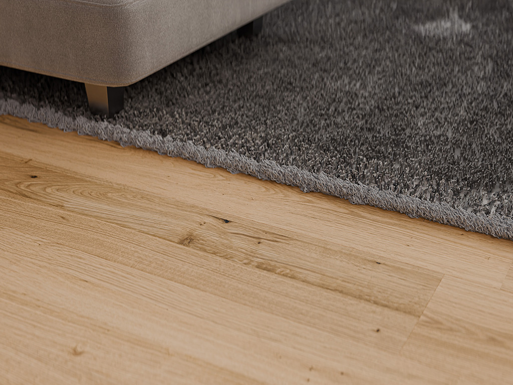 Von weicheren Holzschichten befreit, bildet das harte, stabile Kernholz der Diele eine fühlbar strukturierte, dreidimensionale und lebendig wirkende Oberfläche. Mithilfe von Naturöl als Oberflächenbehandlung behält das Holz seinen einzigartigen natürlichen Look bei und bleibt atmungsaktiv.
