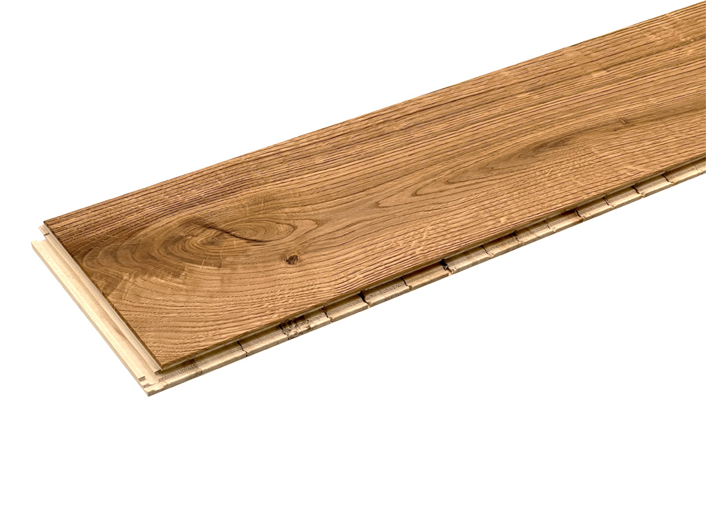 Typisch für das verwendete Eichenholz dieser Diele sind die Jahresringe sowie kleinere oder größere Astfüllungen, die für einen einzigartigen, individuellen Look in Deinem Heim sorgen. Aufgrund seiner Härte und schönen Maserung ist der Eichenholzboden der ultimative Lieblingsboden der Europäer.