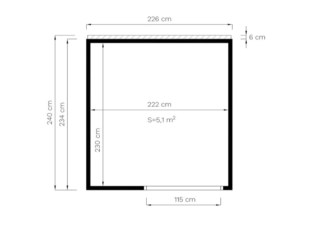 | Außenmaß inkl. Dachüberstand (B x T): | 226 x 240 cm |