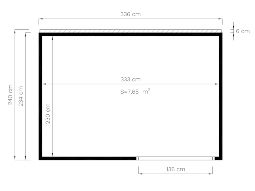 | Außenmaß inkl. Dachüberstand (B x T): | 336 x 240 cm |