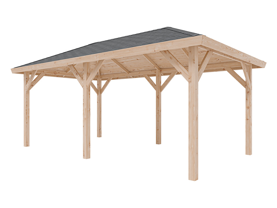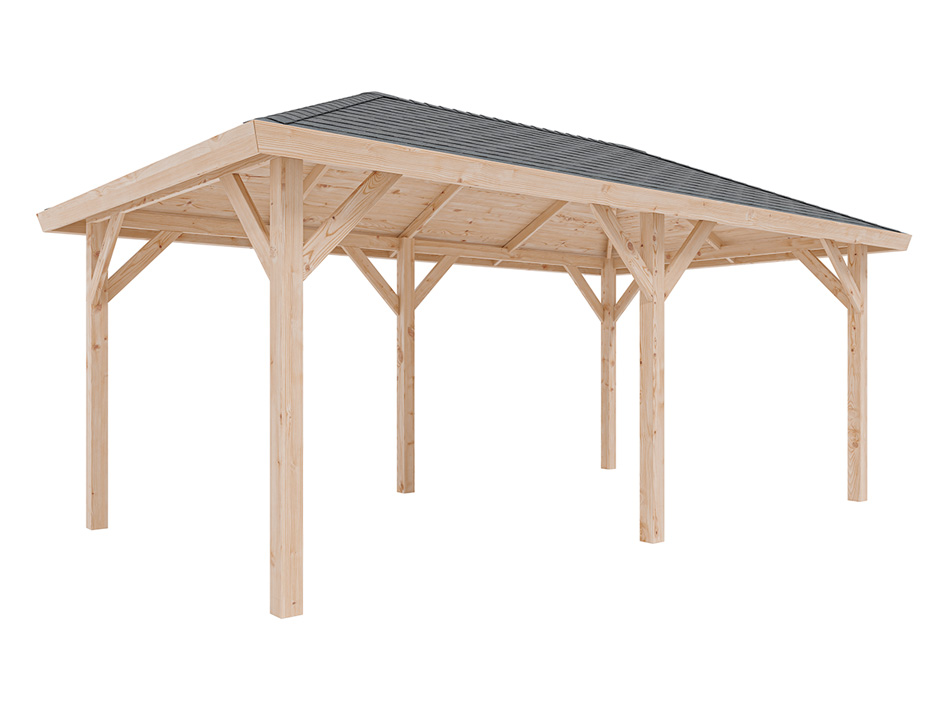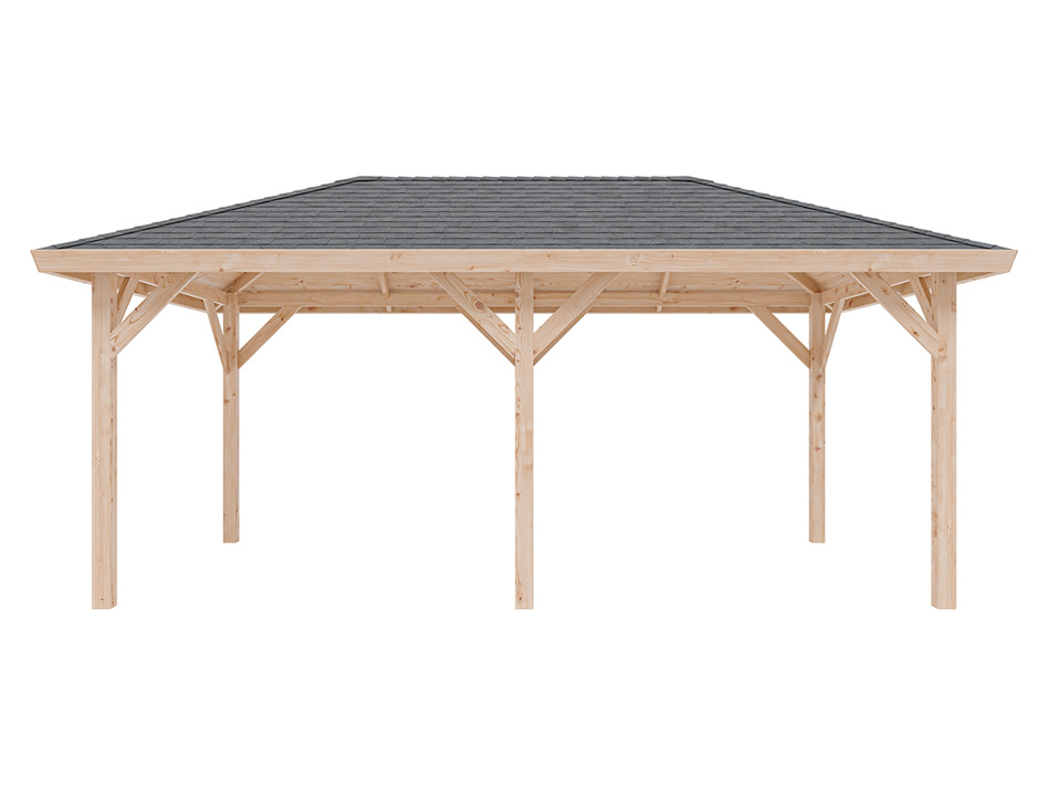 B x T x H: 594 x 340 x 310 cm, Sockelmaß B x T: 542 x 290 cm, Pfostenstärke 11,5 x 11,5 cm