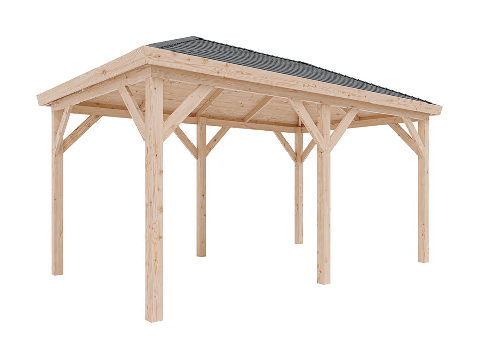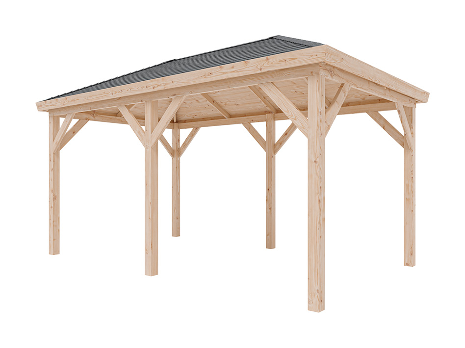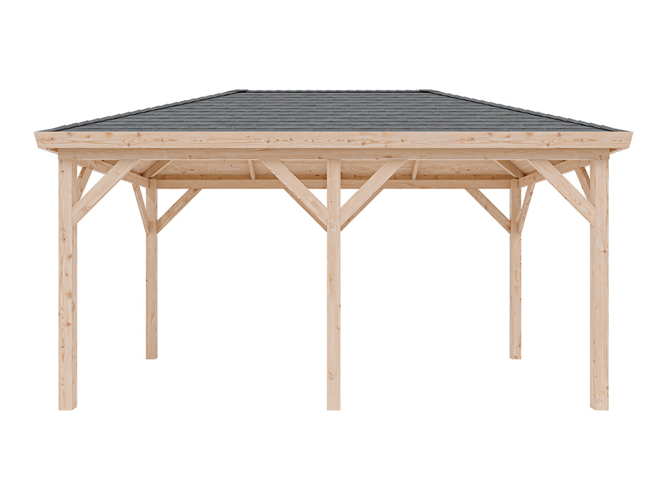 B x T x H: 490 x 290 x 290 cm, Sockelmaß B x T: 470 x 270 cm, Pfostenstärke 11,5 x 11,5 cm