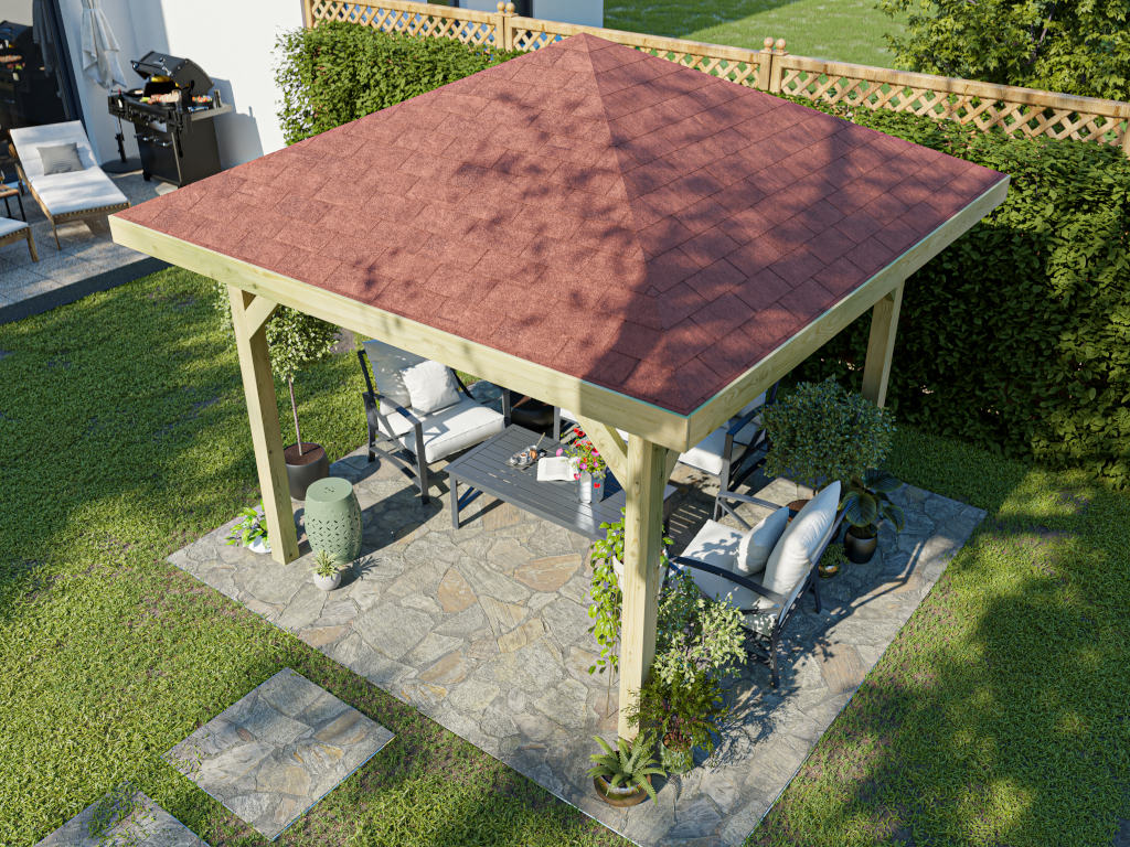 Pavillon Gartenlaube Tourist inkl. Bitumen-Rechteckschindeln rot