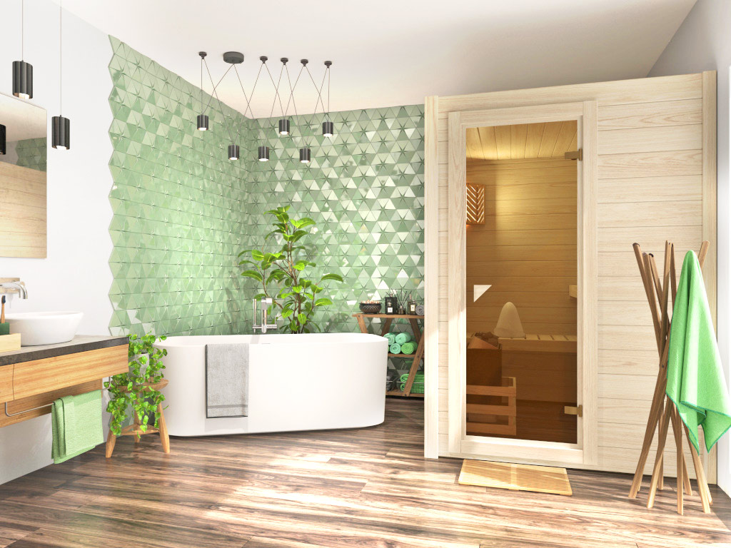 Bei der Montage einer Sauna muss ein Mindestabstand von 10 cm zu Wänden und Decke unbedingt eingehalten werden, um gute Luftzirkulation zu gewährleisten. So kann feucht-warme Luft besser abziehen. In diesem Zusammenhang müssen die Mindestraumhöhe und -breite beachtet werden.