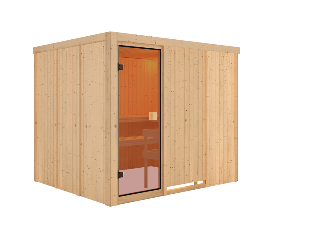 - Innenmaße: Die Innenmaße dieser Sauna mit B 216 x T 181 x H 192 cm erlauben es, dass 2-3 Personen gleichzeitig saunieren können.