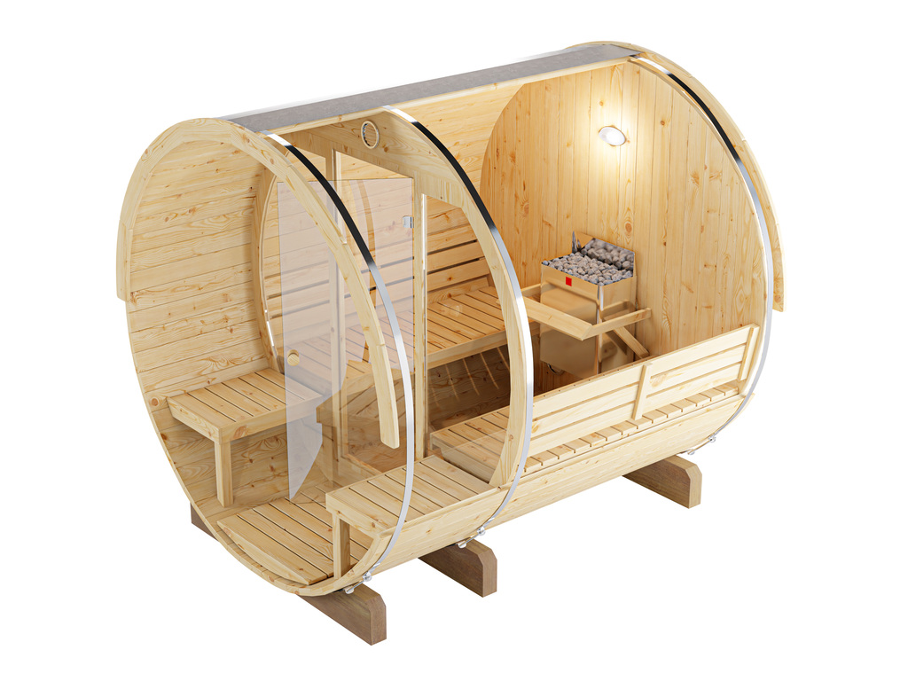 Fasssaunen ziehen mit ihrer außergewöhnlichen Optik nicht nur alle Blicke auf sich, sondern bieten auch hervorragende technische Eigenschaften. Die runde Form ermöglicht eine optimale Luft- und Wärmezirkulation sowie ein besonders schnelles, sparsames Erhitzen ohne unangenehmen Hitzestau in den Ecken und unter der Decke. Dank ihrer kompakten Form und geringen Grundfläche sind Fasssaunen besonders gut für kleine Gärten geeignet.