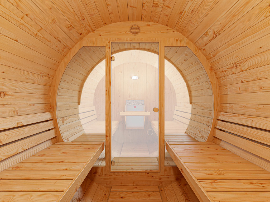 - Bodenrost aus fußwarmem Fichtenholz: für angenehmes Auftreten innerhalb und außerhalb der Sauna.