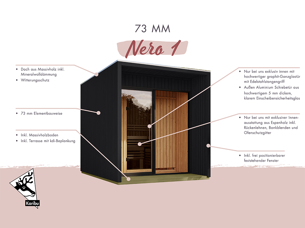 Karibu Saunahaus Nero 1, 73 mm, naturbelassen