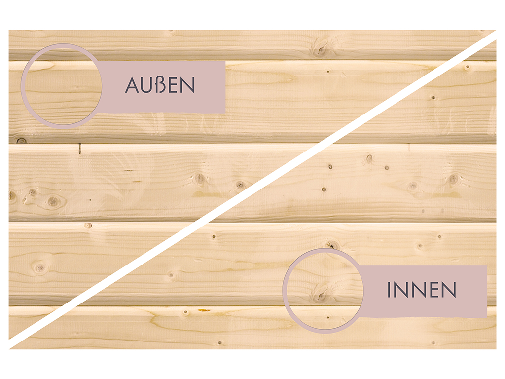 - Bodenrost aus fußwarmem Fichtenholz: für angenehmes Auftreten innerhalb und außerhalb der Sauna.