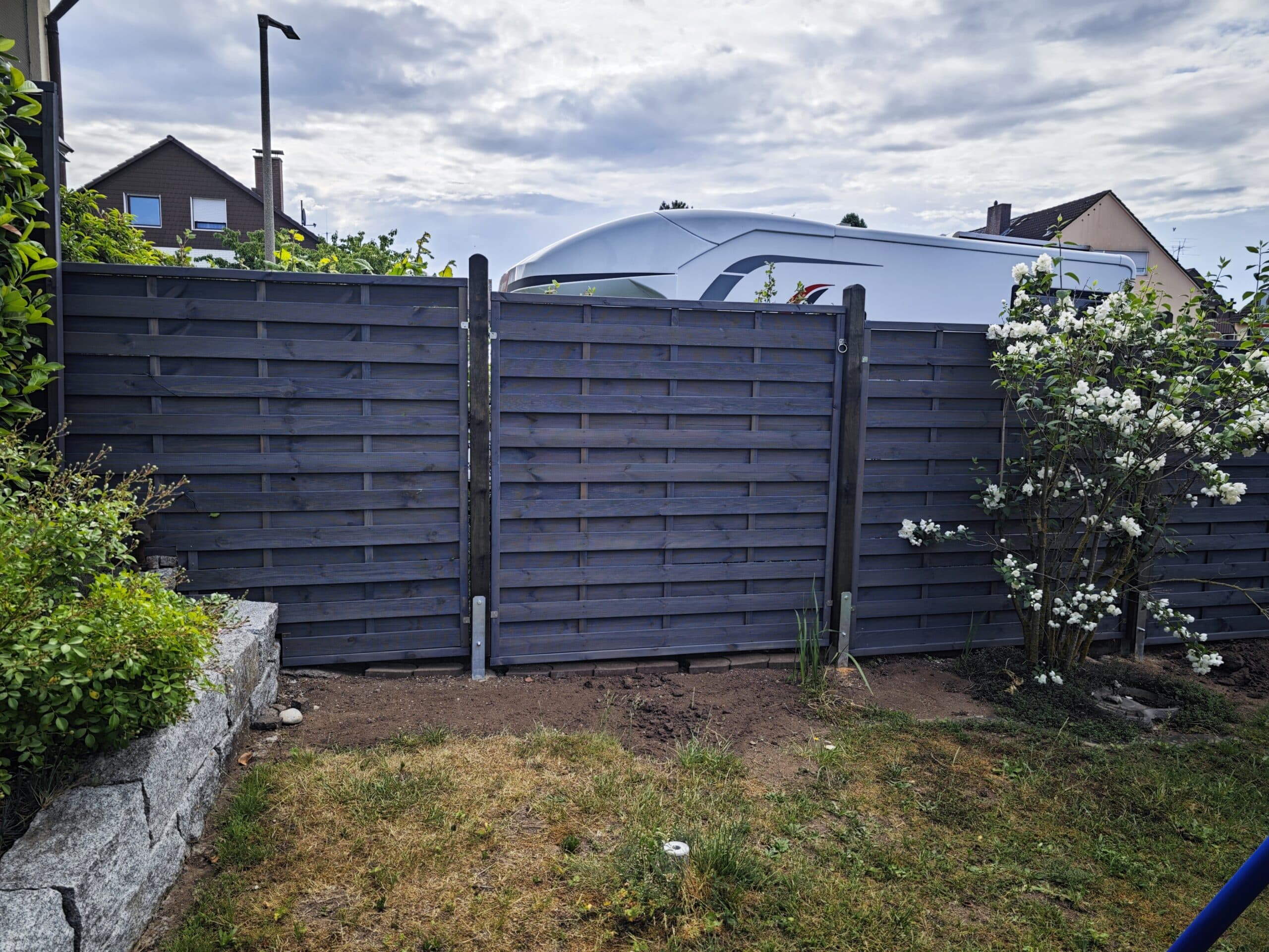 Der Sichtschutzzaun ist grau vorlasiert, dies verleiht nicht nur die schöne Farbe, sondern auch Schutz vor Witterungseinflüssen. - Ausstattung