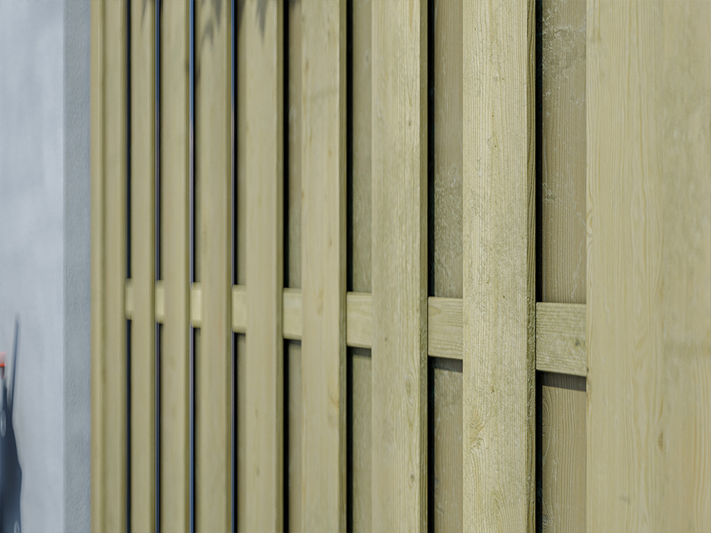 - Oberfläche des Zauns ist leicht grünlich aufgrund der Kesseldruckimprägnierung