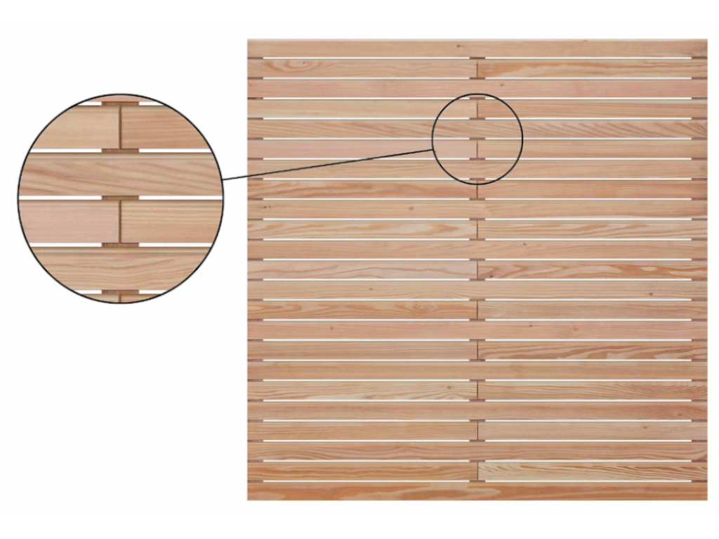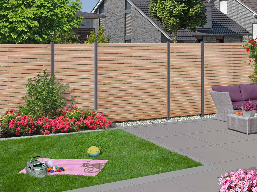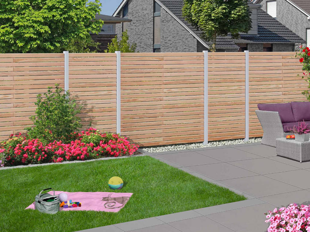 Das Zaunelement besteht aus europäischer Lärche. Die Lärche ist eines der härtesten heimischen Nadelhölzer. Mit seinem gelben bis orangebraunen Farbton und der ausgeprägten Maserung gibt das Holz ein lebhaftes Erscheinungsbild ab. Das besonders massive Holz der Lärche ist sehr strapazierfähig und sogar säurefest. Witterungseinflüsse können der gut bis mäßigen Dauerhaftigkeit daher nicht viel anhaben. Die hohe Holzdichte schützt zudem eigenständig vor holzzersetzenden Insekten und Pilzbefall.