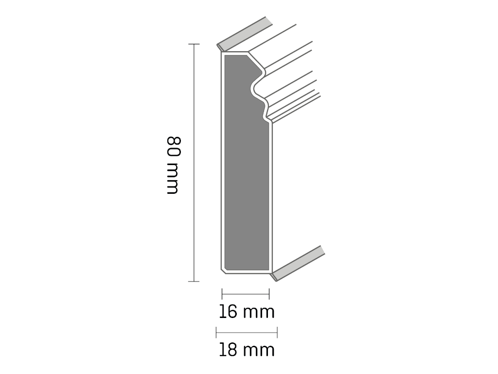 | Sockelleistenprofil (B x H): | 18 x 80 mm |
