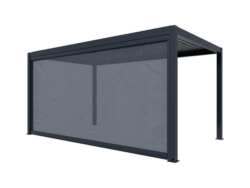 Der Sonnenschutz mit den Maßen 476 x 235 cm (L x H) wird an einer Seite der Pergola befestigt und je nach Variante entweder manuell oder elektrisch bedient, sodass du den Schatten genau nach deinen Bedürfnissen einstellen kannst. Dank seiner durchdachten Konstruktion lässt er sich leicht bedienen und sorgt im Handumdrehen für mehr Komfort.