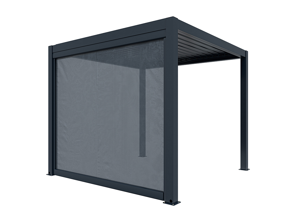 Der Sonnenschutz wird an einer Seite der Pergola befestigt und manuell bedient, sodass du den Schatten genau nach deinen Bedürfnissen einstellen kannst. Dank seiner durchdachten Konstruktion lässt er sich leicht bedienen und sorgt im Handumdrehen für mehr Komfort.