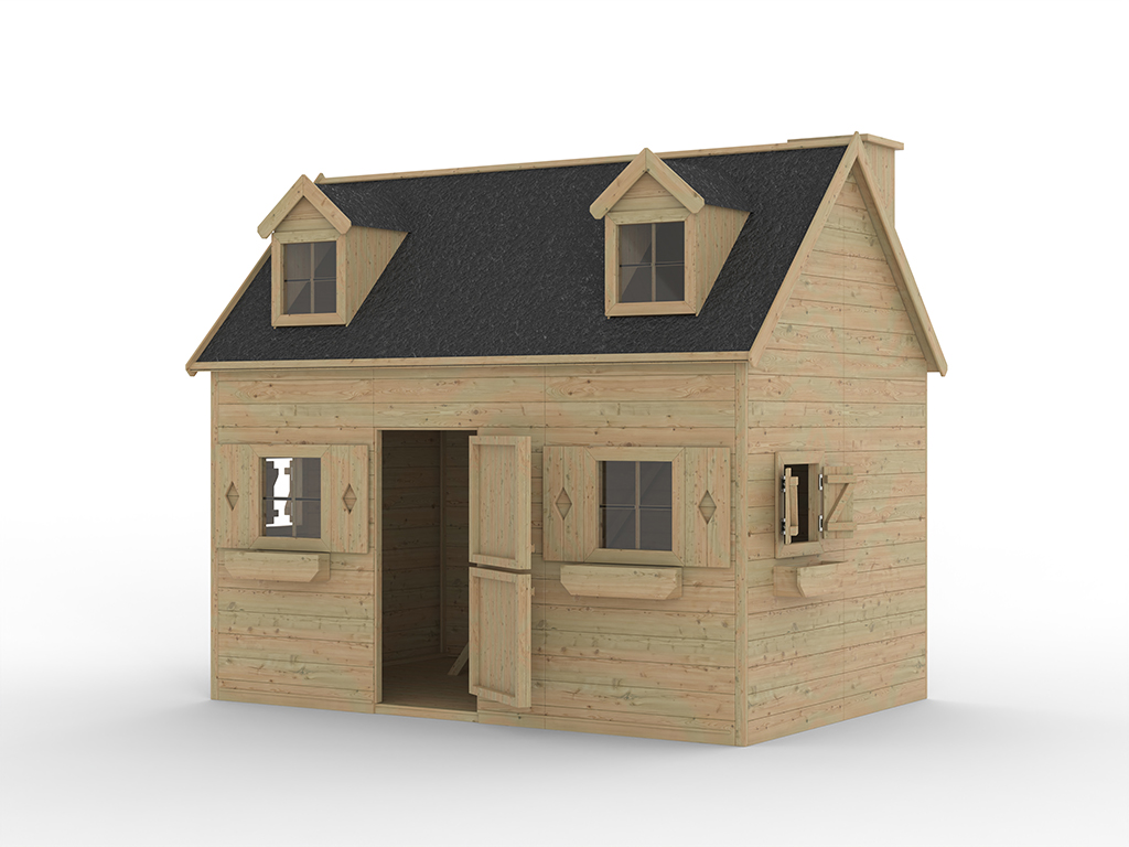 Das Spielhaus mit dekorativem Schornstein auf der Rückseite ist mit einem Schlafboden ausgestattet, der durch eine Treppe im Inneren des Spielhauses erklommen werden kann. Das geräumige Spielhaus bietet jede Menge Platz für eine gemütliche Sitzecke und eine Kinderküche. Beachte hierzu auch unser großes Spielzeug-Sortiment. - Stabile Grundkonstruktion