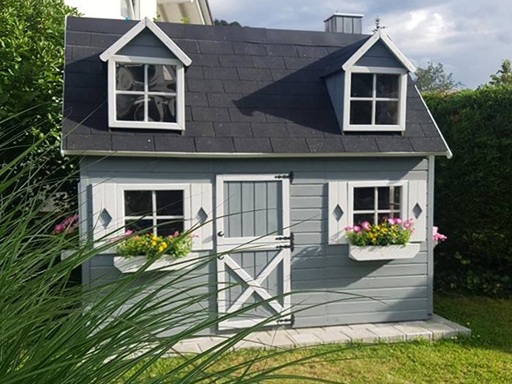 Das Spielhaus mit Schlafboden sorgt für großes Spielvergnügen bei den Kindern.