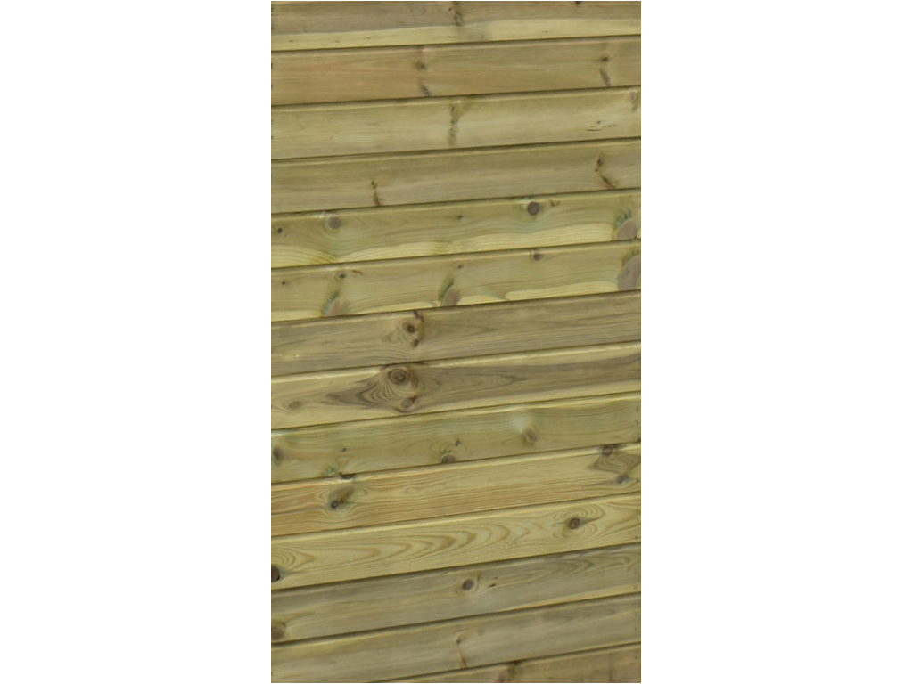 Die Grundkonstruktion besteht aus kesseldruckimprägniertem Profilholz und ist somit besonders witterungsbeständig. Nach vollständiger Trocknung kann das Spielhaus nach Lust und Laune mit einem Farbanstrich gestrichen werden. Wir empfehlen hierzu eine offenporige, hoch pigmentierte Holzschutzfarbe. - Inkl. Fußboden