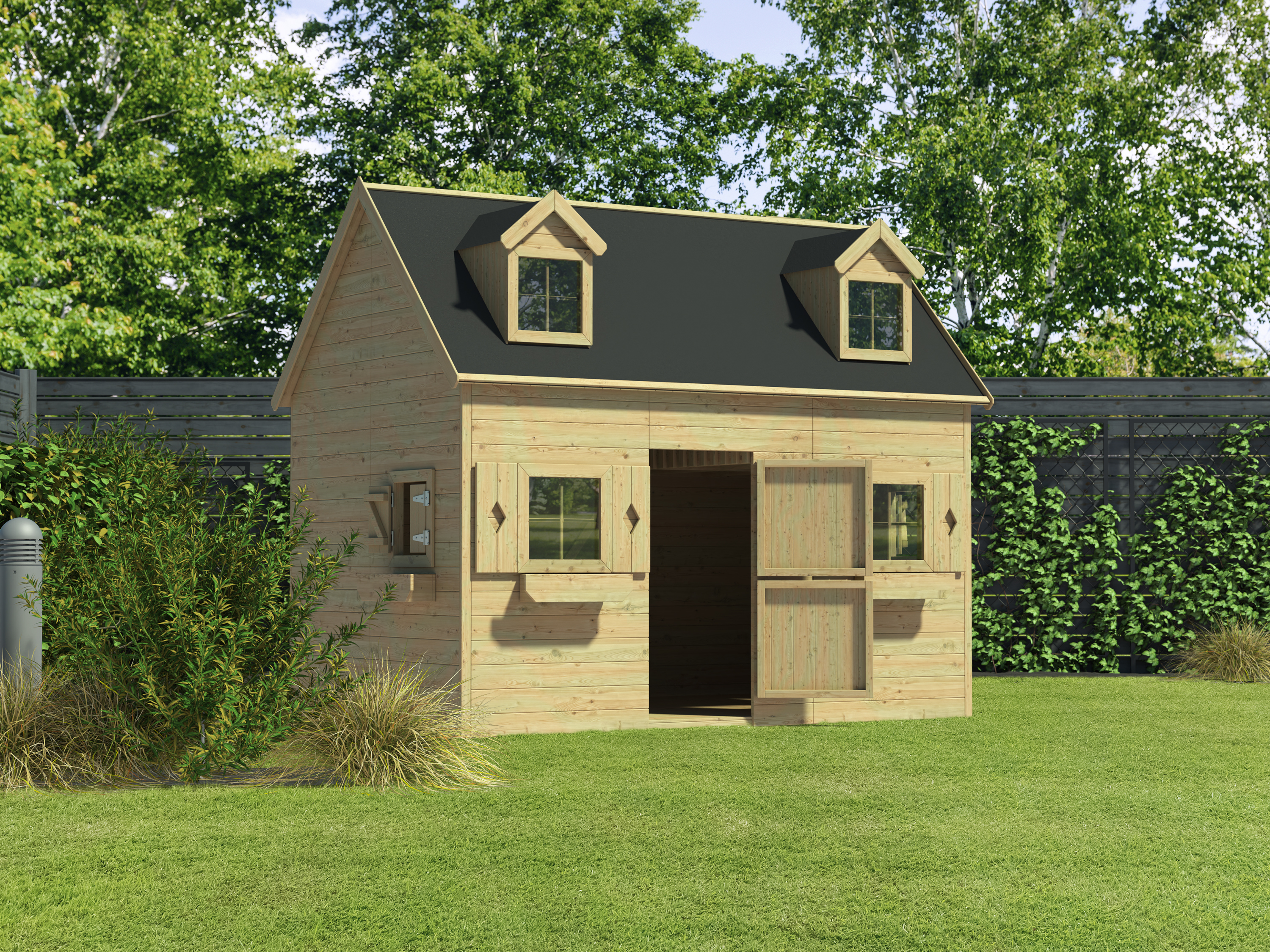 Das Spielhaus mit Schlafboden sorgt für großes Spielvergnügen bei den Kindern.